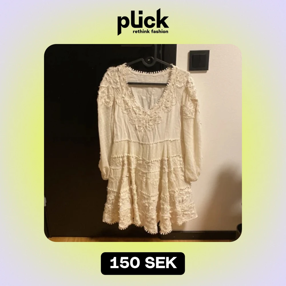 Fin vit klänning med vacker spets. Inte genomskinlig och faller vackert.