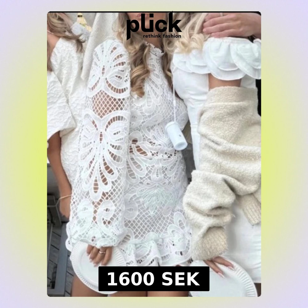 Vit miniklänning med broderi långärmad till studenten