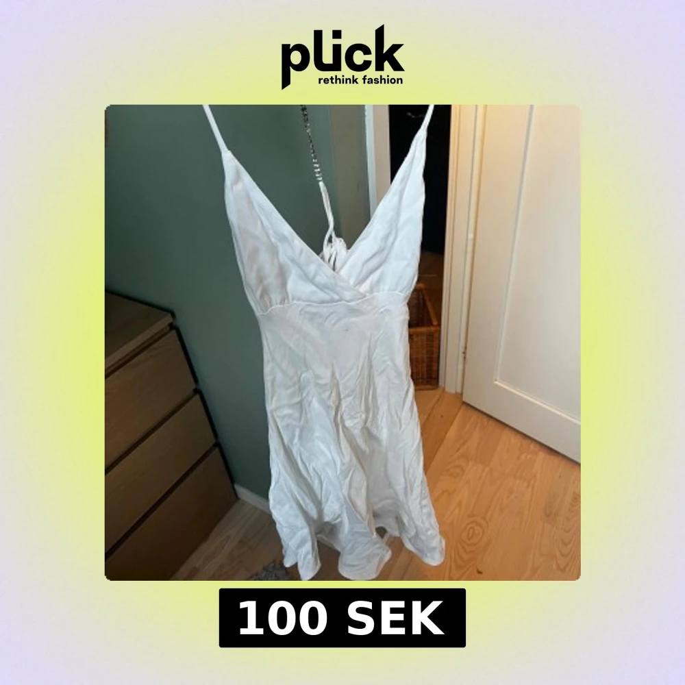 En vit kortklänning från Zara med omlott och smala axelband i storlek xs/S Justerbar knytning i ryggen❤️. (Den behövs strykas därav hur skrynklig den är och det är även en liten fläck som framgår på bilderna men tror den kan gå bort i tvätten)