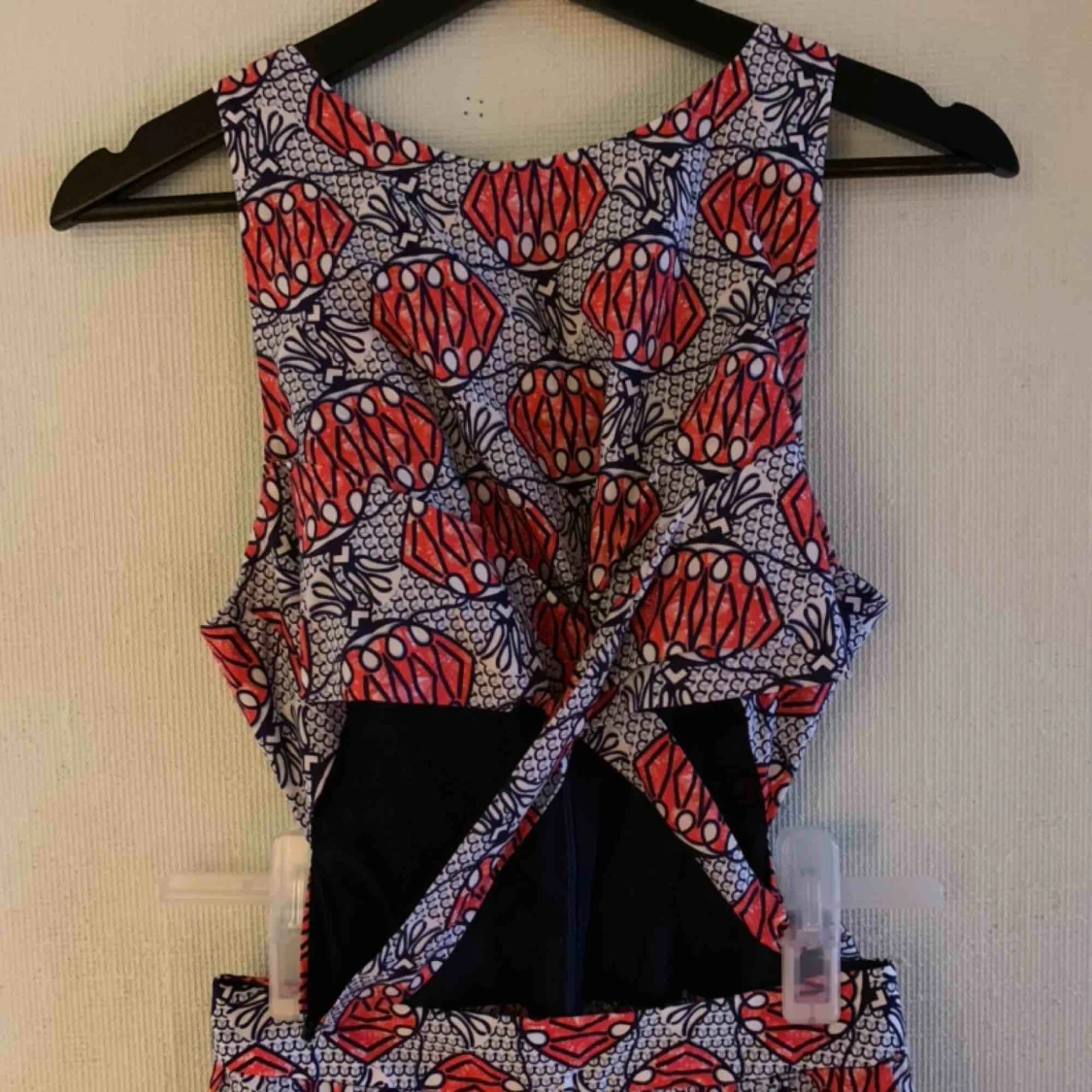Mönstrad klänning som har ett kors framtill, blir snyggt där det visar lite hud precis vid nedersta delen av redbenen! Frakten ingår!