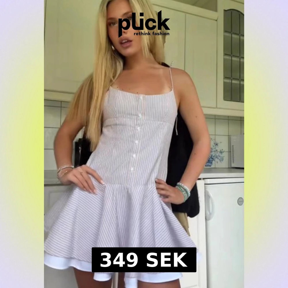 Supersöt kortklänning med tunna axelband och knappar framtill. Klänningen är vit med smala blå och orangea ränder och har en volangig kjol med extra lager längst ner. Köpt för 400 och säljer den då jag inte hann skicka tillbaks den som var i fel storlek och därför två, den har prislapp kvar och aldrig använd!😇🤗