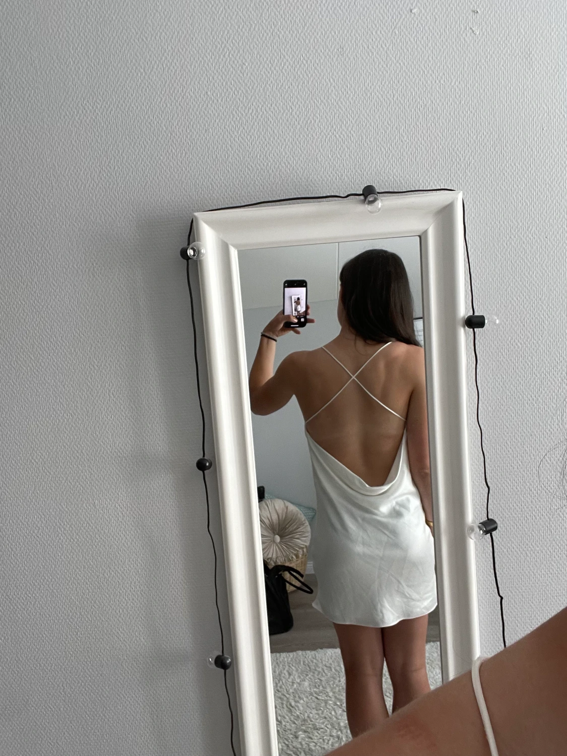 En superfin vit satinklänning från zara i storlek S. Den är i nyskick och perfekt till sommaren. Säljer då den är för stor på mig💓