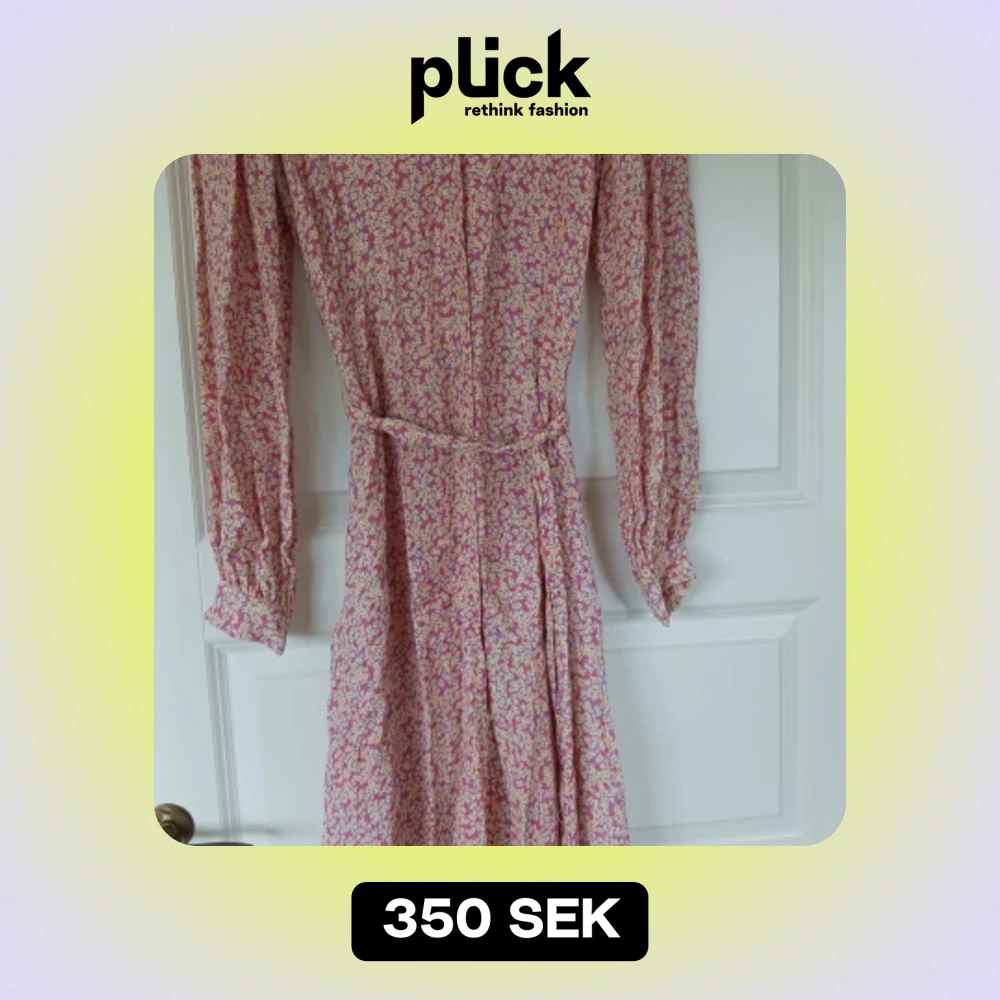 Blommig långklänning från 2Day. Klänningen är gul, rosa och blå, den har skärp i midjan och knappar fram hela vägen. Den köptes nyligen second hand på Arkivet och jag skulle säga att den är i bra skick.