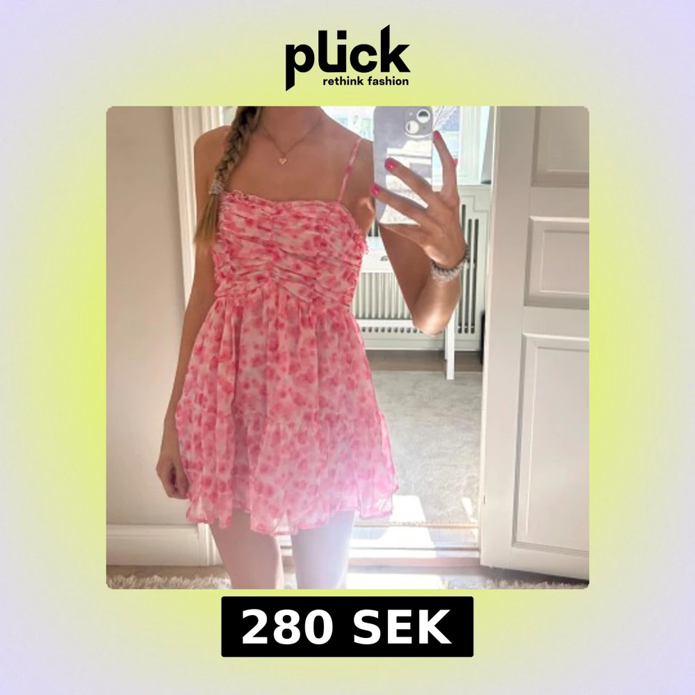 Supersöt rosa klänning med blommigt mönster. smala axelband. Perfekt för sommarens varma dagar!🩷🩷🩷