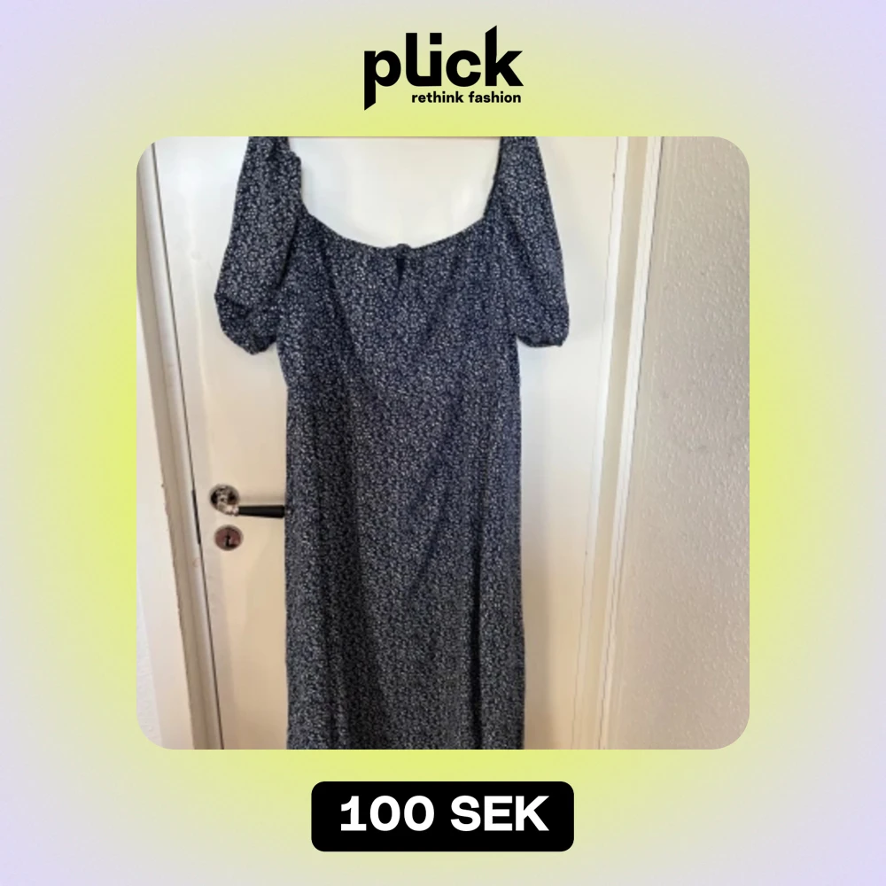 Blå sommarklänning med bell sleeves och ordentlig byst inte platt. Maxiklänning.