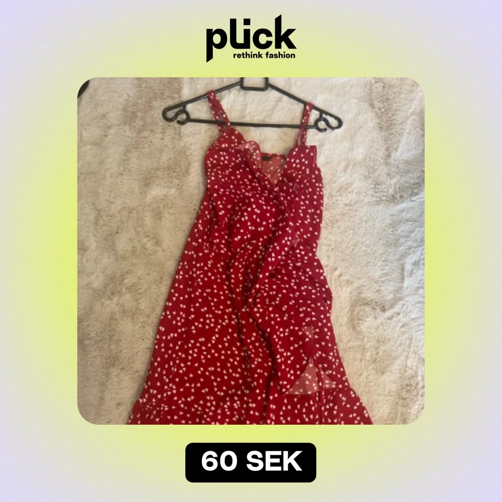 Klänning som man knyter omlott, röd med små hjärtan på, använd fåtal gr