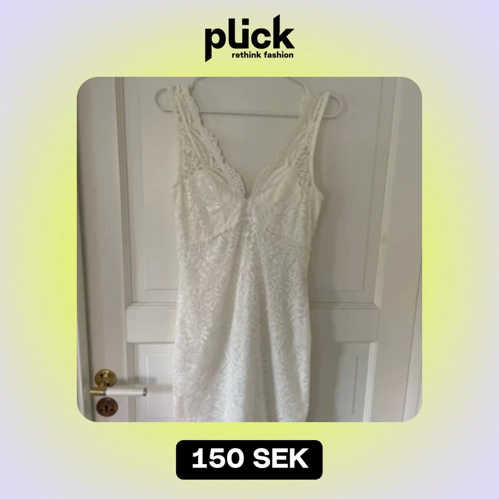 Sommarklänning perfekt till skolavslutningen eller sommaren i allmänhet. Den är använd en gång och har därmed två små fläckar men som knappt syns (se sista bilden). Den är ej genomskinlig då den har ett under tyg.