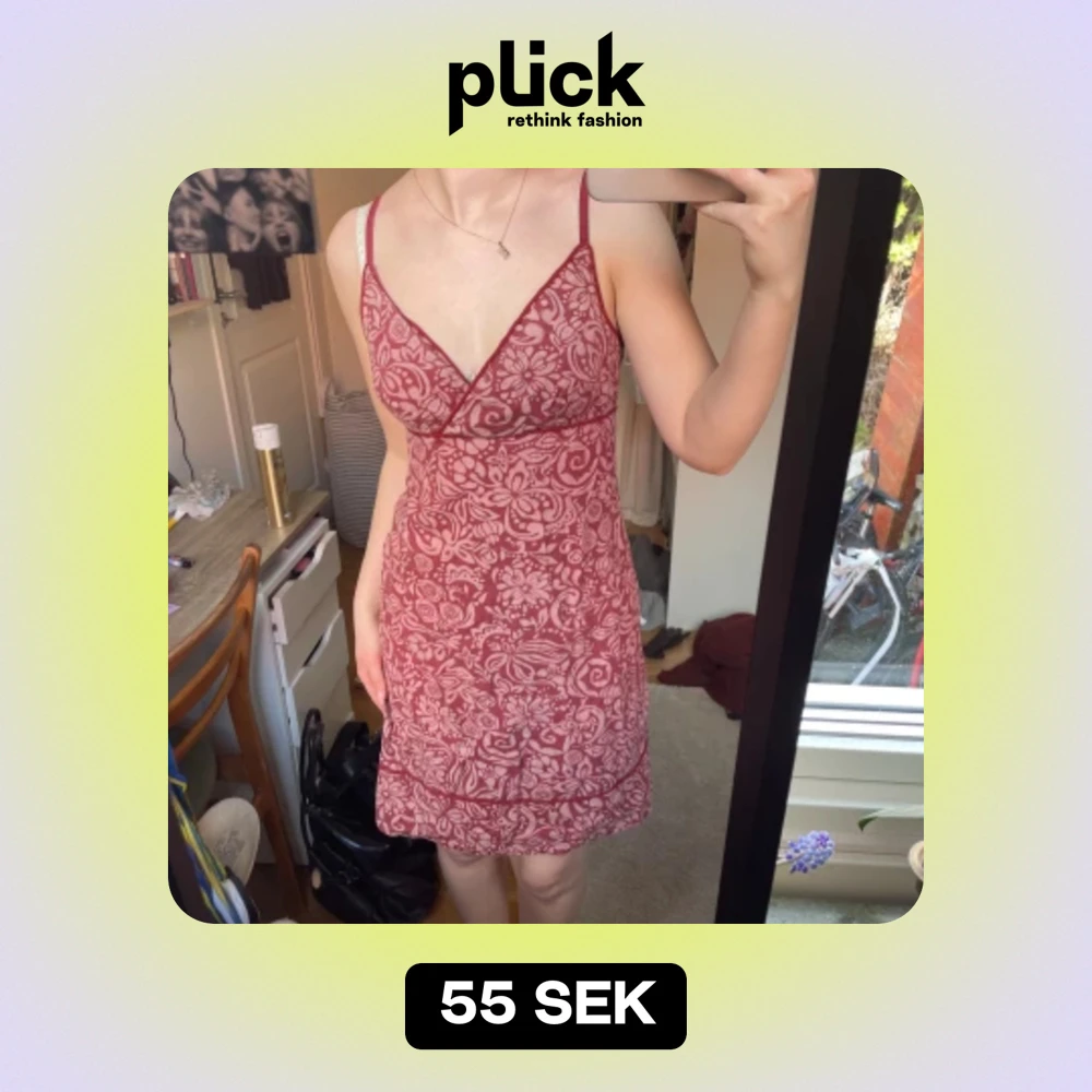 Gullig sommarklänning med fint mönster. Insydd i ryggen för tajtare passform men det går att sprätta upp.