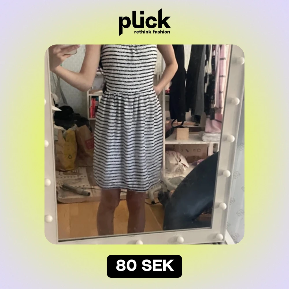 Blå och vit randig sommarklänning, materialet är stretchigt och därmed passar den nog nån storlek större. Den är bara använd en gång och tvättad efteråt. Klänningen är i väldigt bra skick och är väldigt luftig och skön att ha på sig.