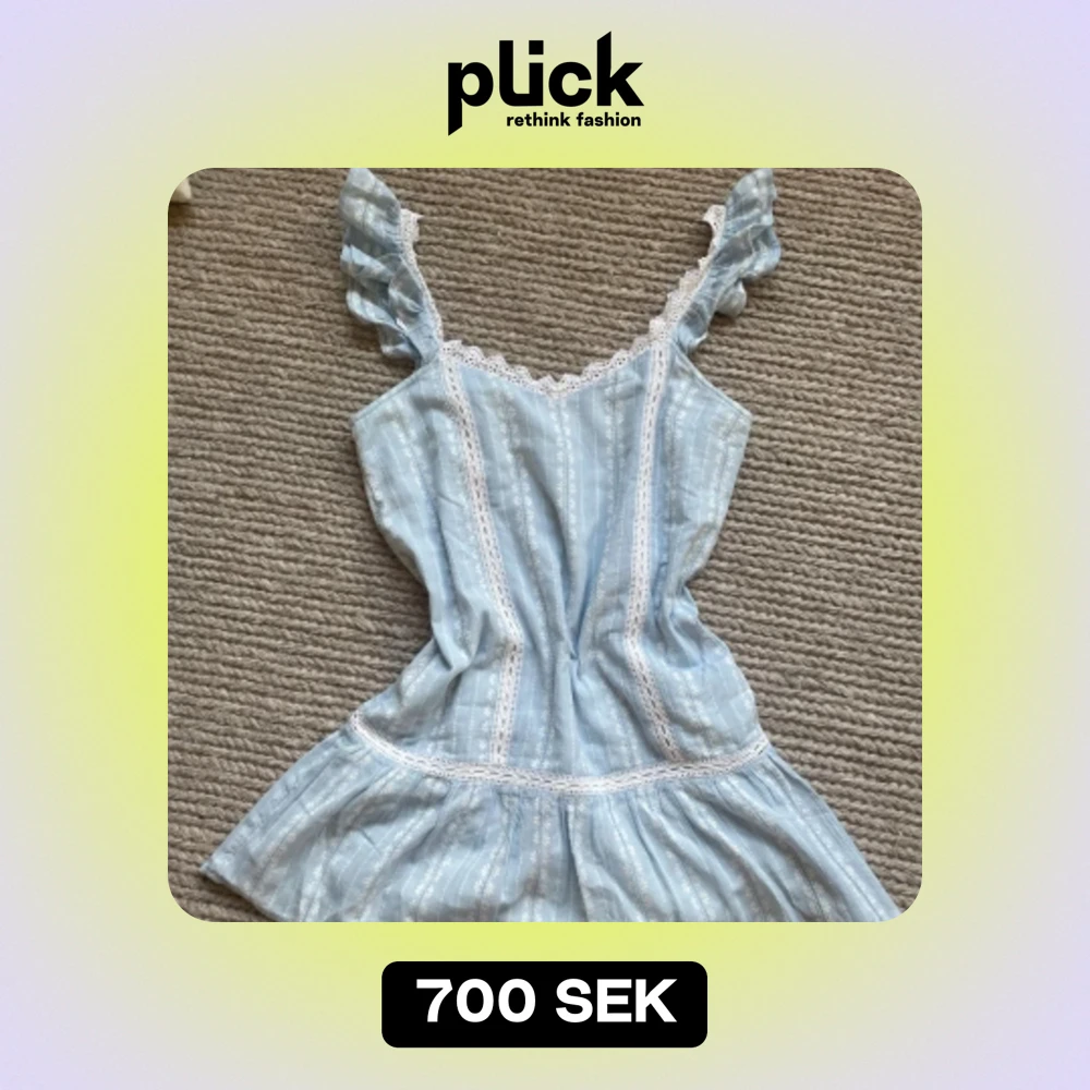 Otroligt söt sommarklänning som jag köpte inför midsommar men inte kom till användning🩵 volanger på axlarna och i mini längd OBS! Åker på 3 veckors semester imorgon (29/6) kväll så köp innan lunch imorgon om ni vill ha den i juli!💕☀️