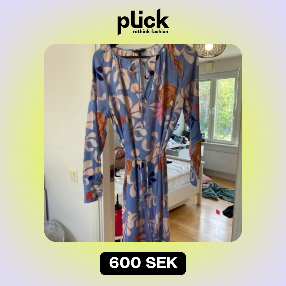 Härlig sommarklänning för trädgårdsfesten eller student mottagning. Den är i 100% Viskos, är i storlek 34 men stor i storleken. Längd från axel 105 cm. Den är använd 2 ggr och inköpt sommaren 2023.