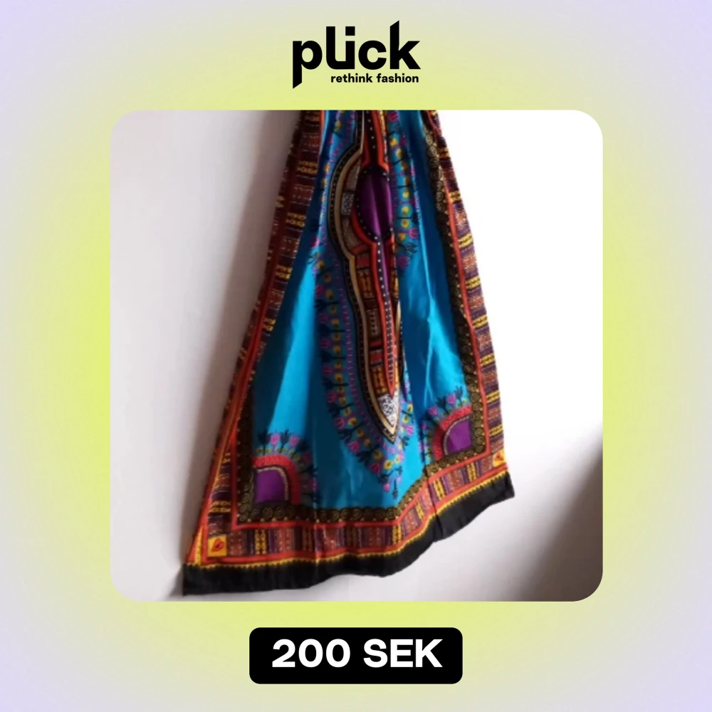 Klänning från Kap Verde i underbara färger. Aldrig använd! Passar Small och Medium då den är stretchig i midjan.