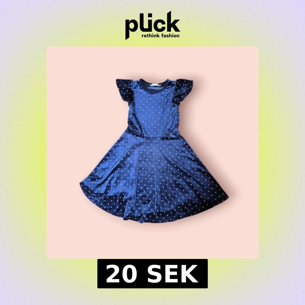 Supersöt mörkblå sammetsklänning från H&M med glittriga prickar och volangärmar. Klänningen har rund halsringning och ett svängigt kjolparti som ger en riktigt fin siluett. Perfekt för dig som vill sticka ut lite extra!