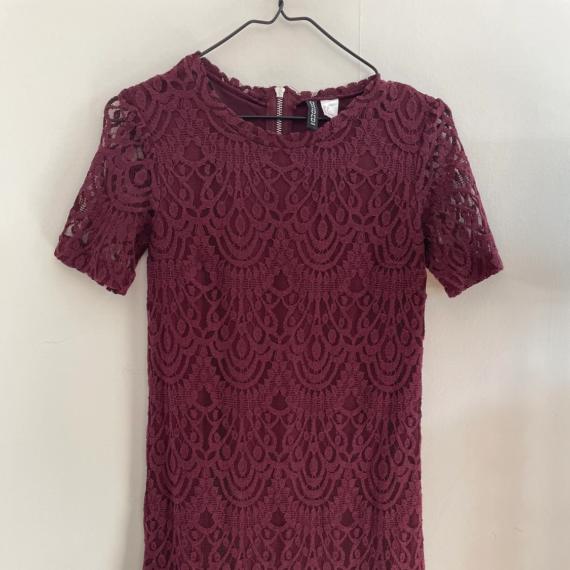 Vinröd spetsklänning som sitter tight och slutar i låten! Superfin men tyvärr förliten för mig 🥀💗 väldigt bra skick och använd få gånger!