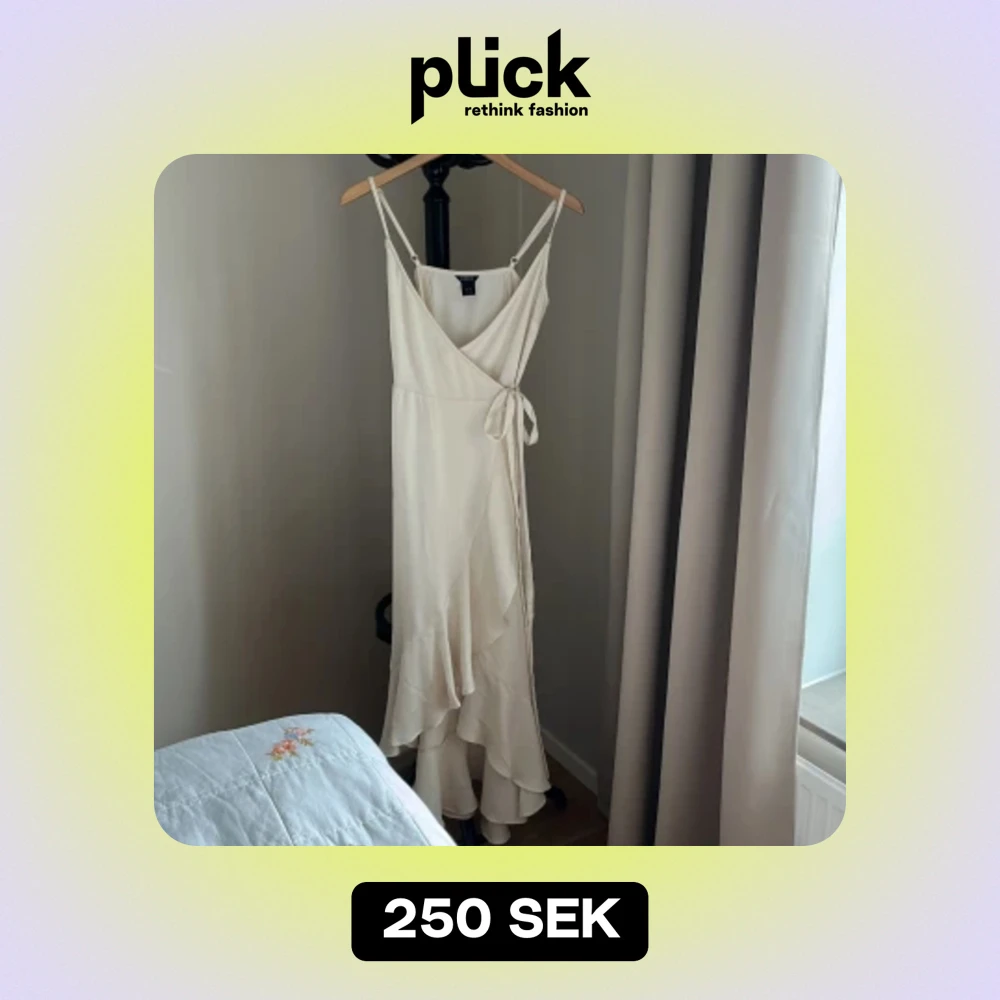 Superfin pärlfärgad klänning köpt på Lindex. Storleken är XS men skulle säga att den även passar S. Justerbara, tunna axelband och omlott midja. Aldrig använd då den är för lång på mig (155cm), nyskick!