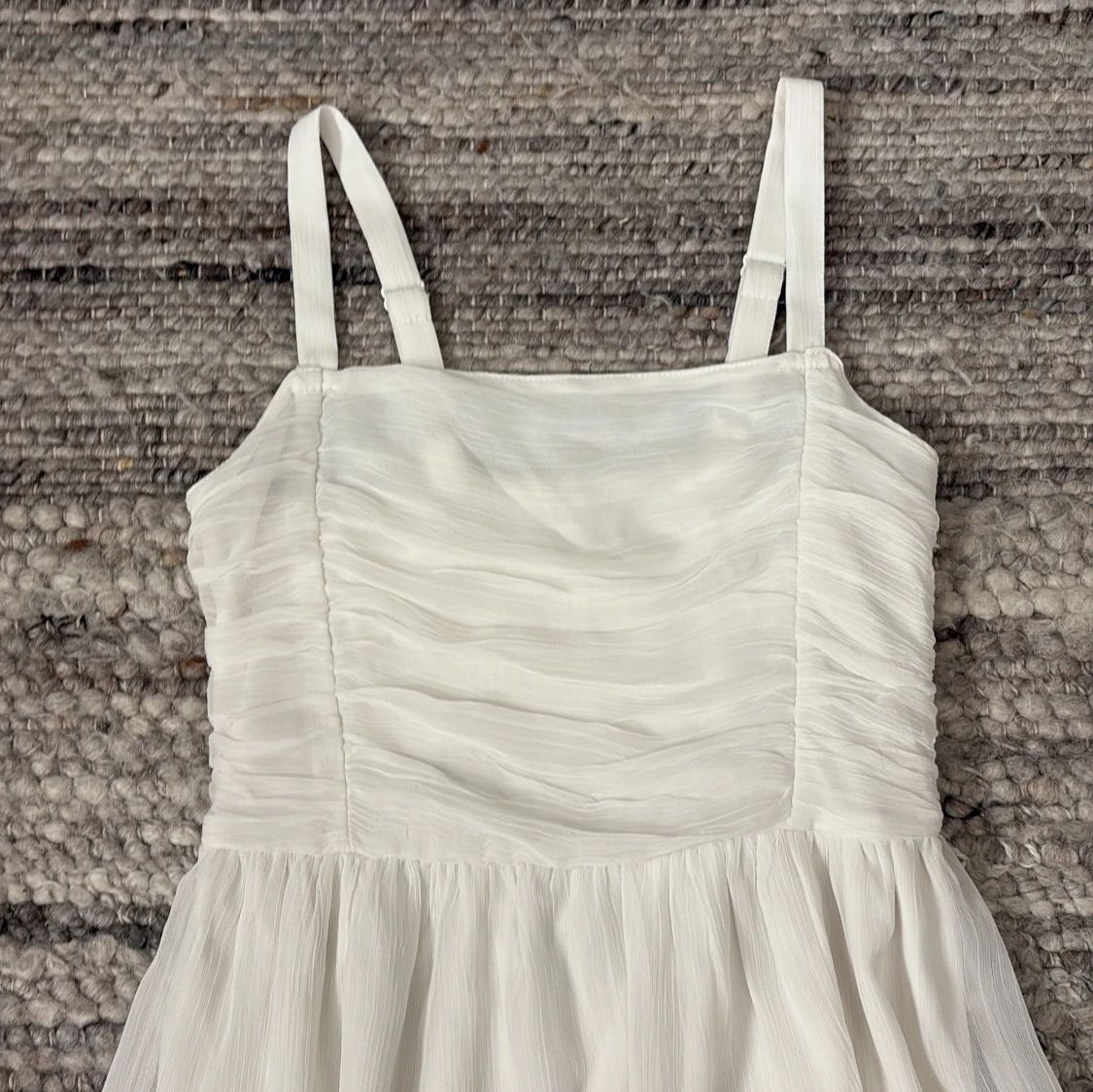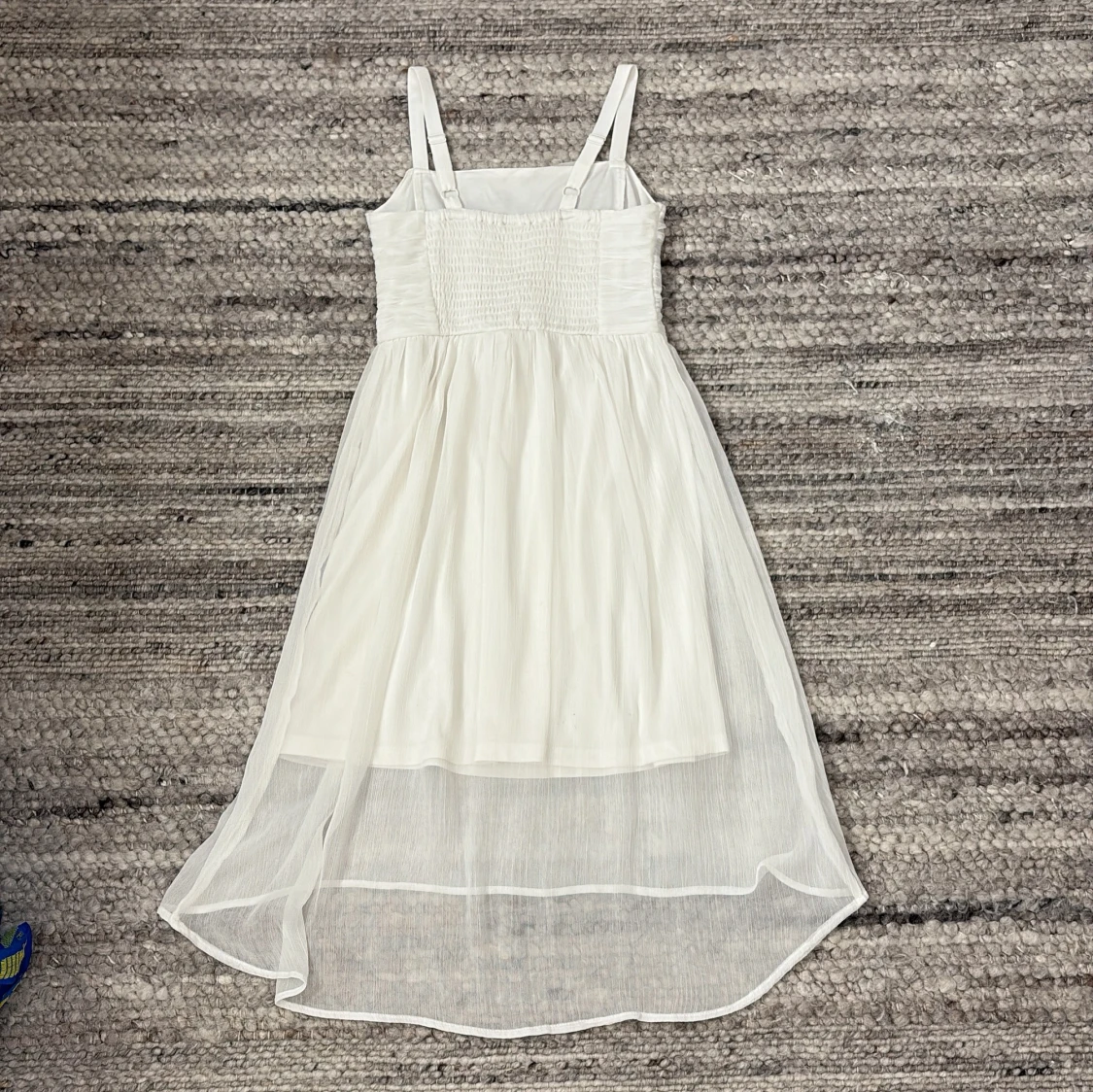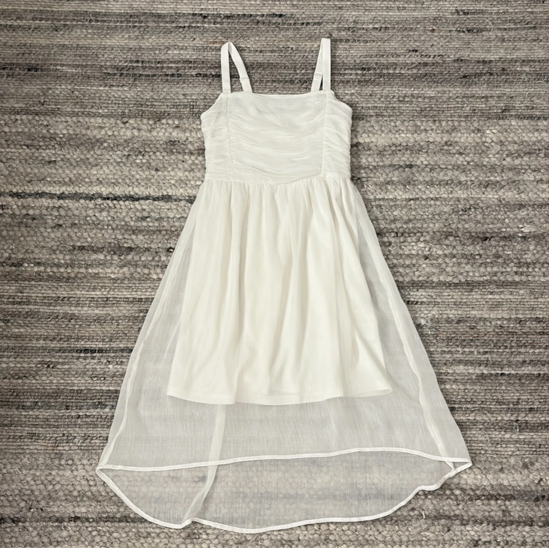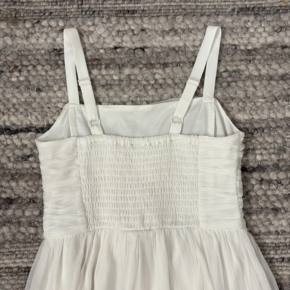 Säljer en elegant vit klänning med smala axelband och en luftig kjol. Klänningen har en vacker rynkad detalj på överdelen och en asymmetrisk nederdel som ger en fin siluett. Perfekt för sommarens alla tillfällen!🌺