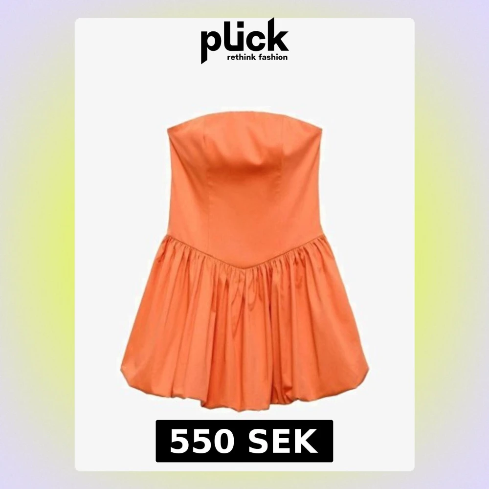 Orange axelbandslös kortklänning med volang. Dragkedja baktill. Endast använd 2 gånger så i toppenskick! Nypris 750 kr🧡🧡