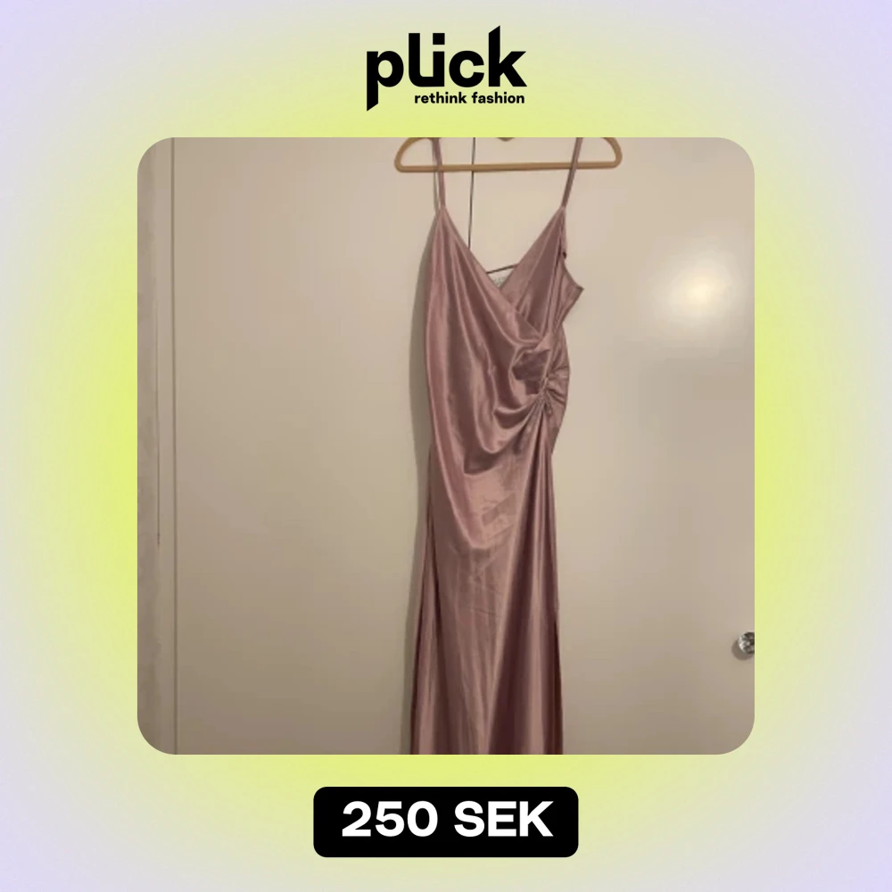 Köpte klänningen från Nelly för ett år sedan men har inte kommit till användning! Klänningen är normal i storleken, lite tunnare material som gör att den passar bra i varmare vår/sommarväder ✨ klänningen har en slits och reglerbara axelband🩷