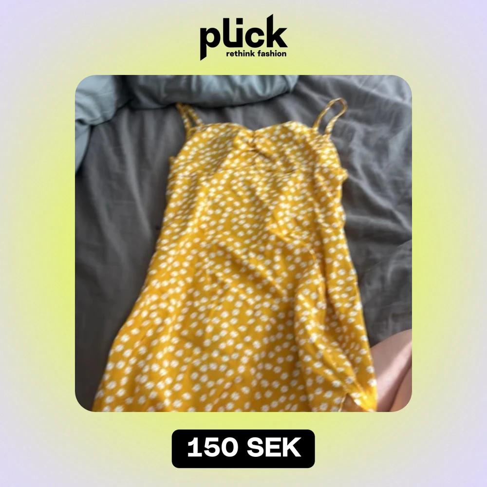 En jätte fin gul sommar klänning med vita blommor. Slits i botten med dragkedja på baksidan. Klänningen är medellängd.