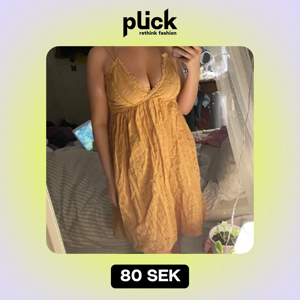 Supergulliga orange klänning med knappar i ryggen och korsad rygg