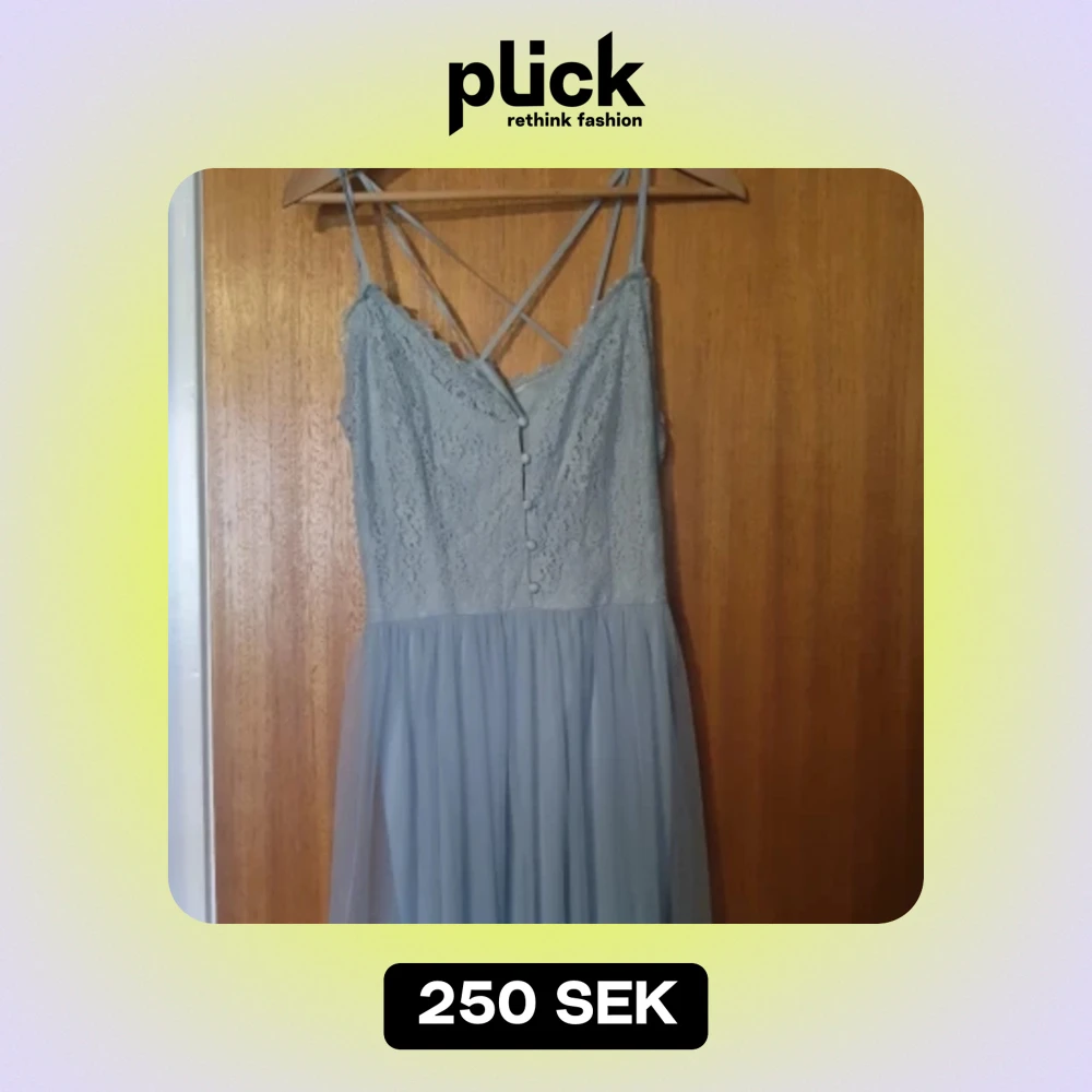 Vet inte exakta måttet då lapparna är avklippta men ca 38-42 skulle jag säga. Använd enstaka gången och är i bra skick. Perfekt att ha på midsommar eller andra högtider. Lång babyblå klänning med spets och tyll.