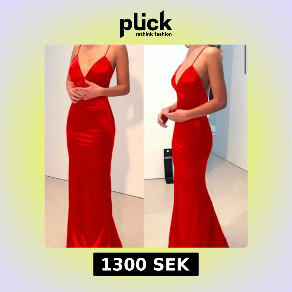 Röd långklänning med smala axelband och djup v-ringning. Storlek 36. Öppen rygg och fina knappar baktill vid ryggen. Perfekt till balen!! Även inbyggd bh🙌🏼 Helt ny, endast provad då jag hittade en annan balklänning. 🩷🌸 Köpt för ca 1700kr