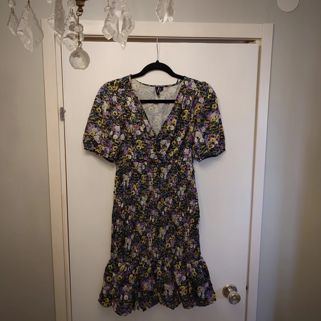 Elegant blommig klänning från Vero Moda I storlek s. Formar kurvorna fint! Varsamt använd.