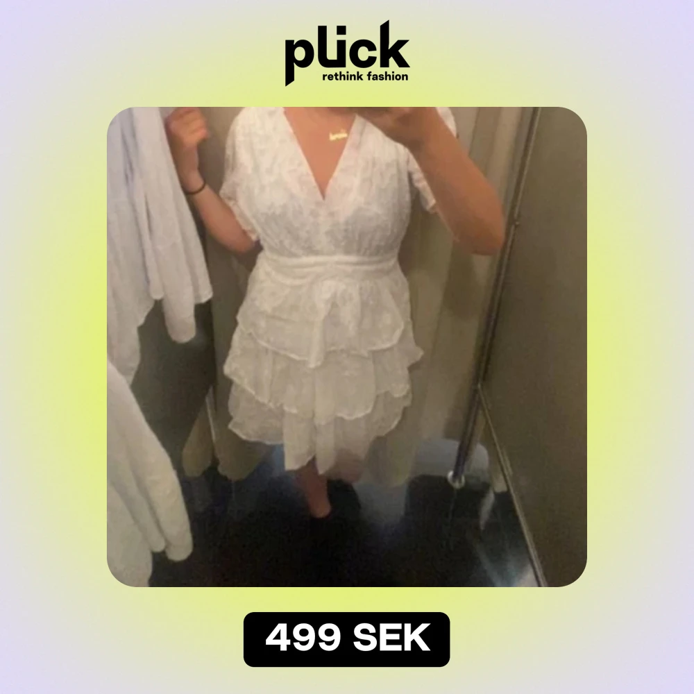 Jätte gullig vit sommarklänning. Klänningen är i storlek L men själv så har jag storlek S och den passar perfekt.