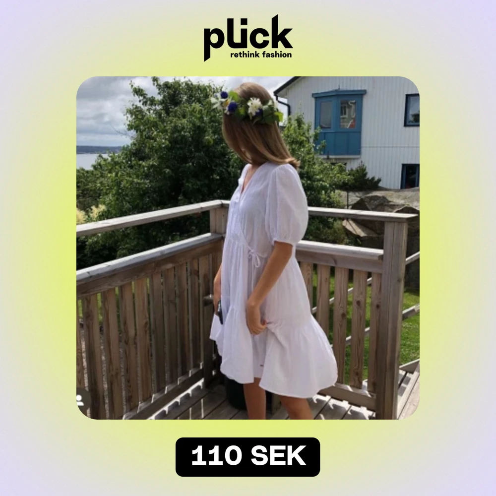 Fin sommarklĂ€nning i mjukt linne tygđ€ KnĂ€lĂ„ng klĂ€nning med puffĂ€rm och ett lite knyte i midjan. Skulle sĂ€ga att klĂ€nningen Ă€r som en S