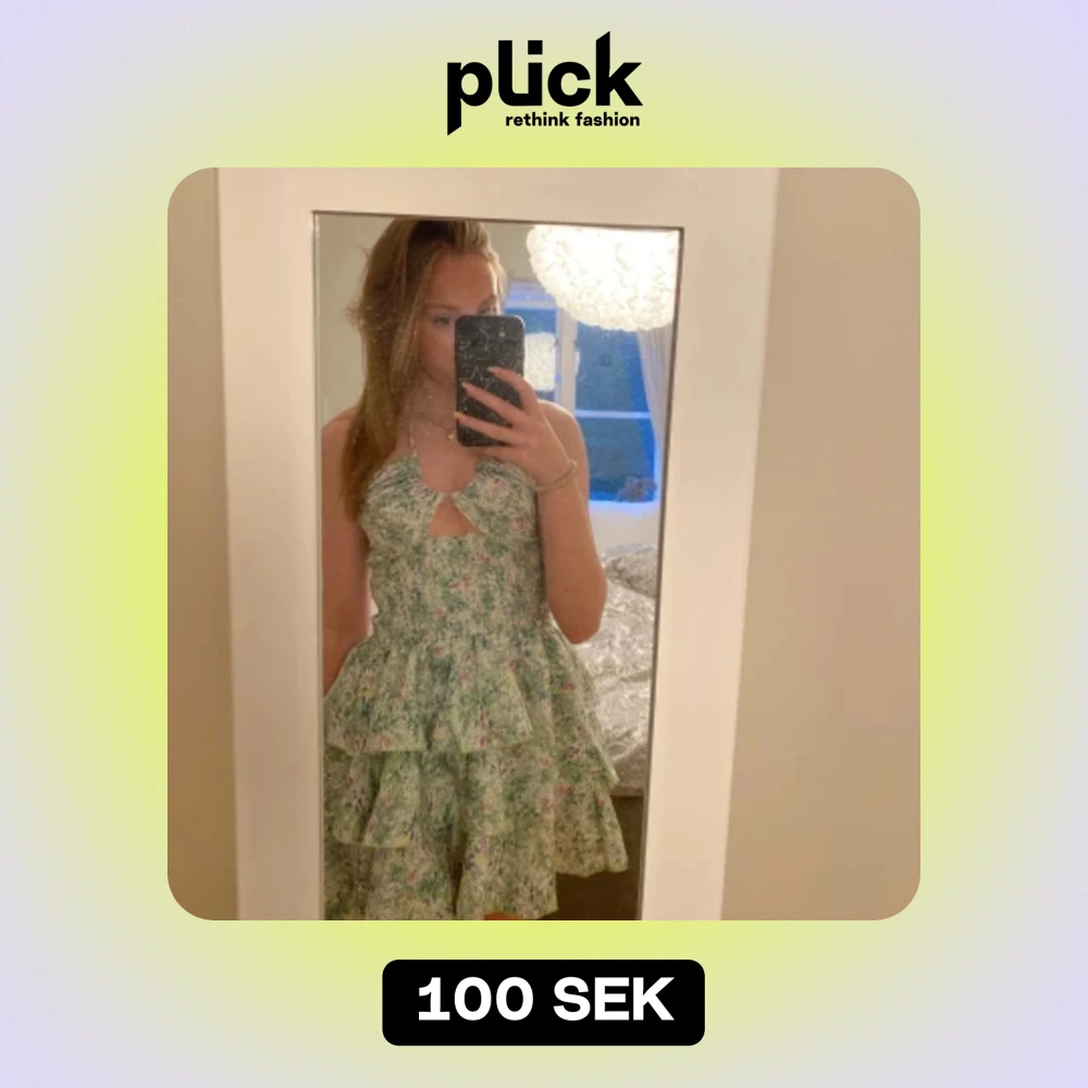 Kort klänning med volanger. Går att knyta bakom nacken men även fram som på sista bilden. Använd bara en gång så i bra skick!