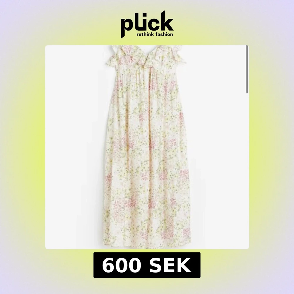 Super fin klänning från HM, använd 3 gånger. Köpte klänningen i Storlek L men har sytt om den, skulle säga att den sitter mer som S nu☺️Klänningen är creme vit med blommigt mönster