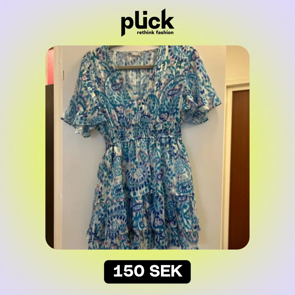 Väldigt fin mönstrad klänning med små detaljer i guld. 💙🤍