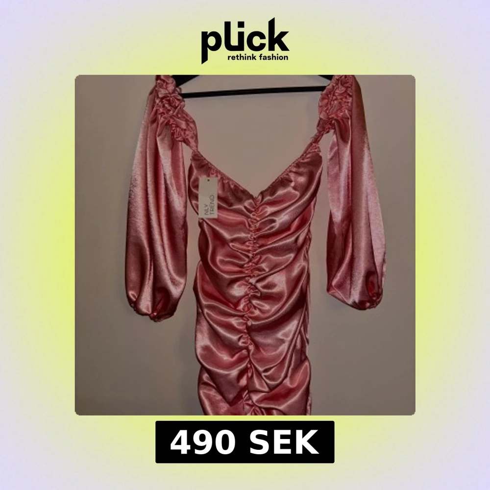 Säljer en rosa satin klänning från NLY Trend i storlek 38. Klänningen har v-ringning, långa voluminösa ärmar och rynkade detaljer framtill. Perfekt för dig som vill sticka ut med en glansig och trendig look. Sitter tight.