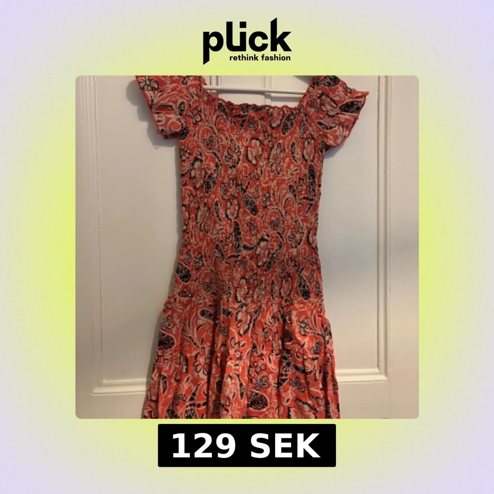 Säljer en kortklänning från MNG i storlek XS. Klänningen har ett färgstarkt mönster i rött, svart och vitt med blommiga och paisley-detaljer. Den har korta puffärmar och smockad överdel för en bekväm passform. Kan användas off-shoulder