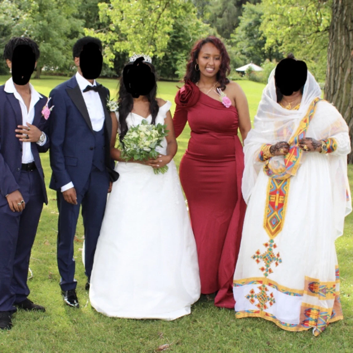 Jag är en och 170 och klänningen är percis till marken på mig. Klänningen är skit fin har använts en gång