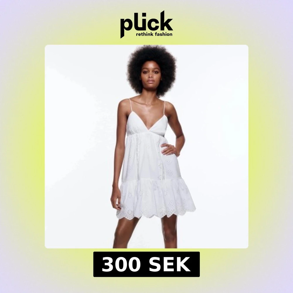 vit klänning med smala axelband och volangdetaljer. Perfekt för sommaren. Köpte sommaren 2022 men har använts fåtal gånger så i bra skick!!💞💞