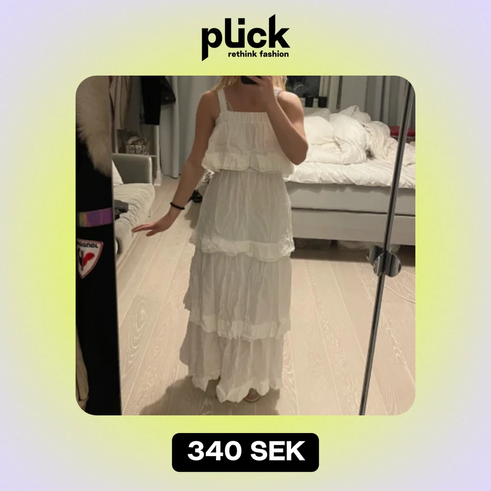 Uppskattar storleken till XS/S. Köpte i en fransk butik så finns inget märke. Den är bra i kvaliteten och är inte så genomskinlig. Man kan ha den antingen med band som på första bilden eller ha den off-shoulder som den andra bilden. Världens finaste!