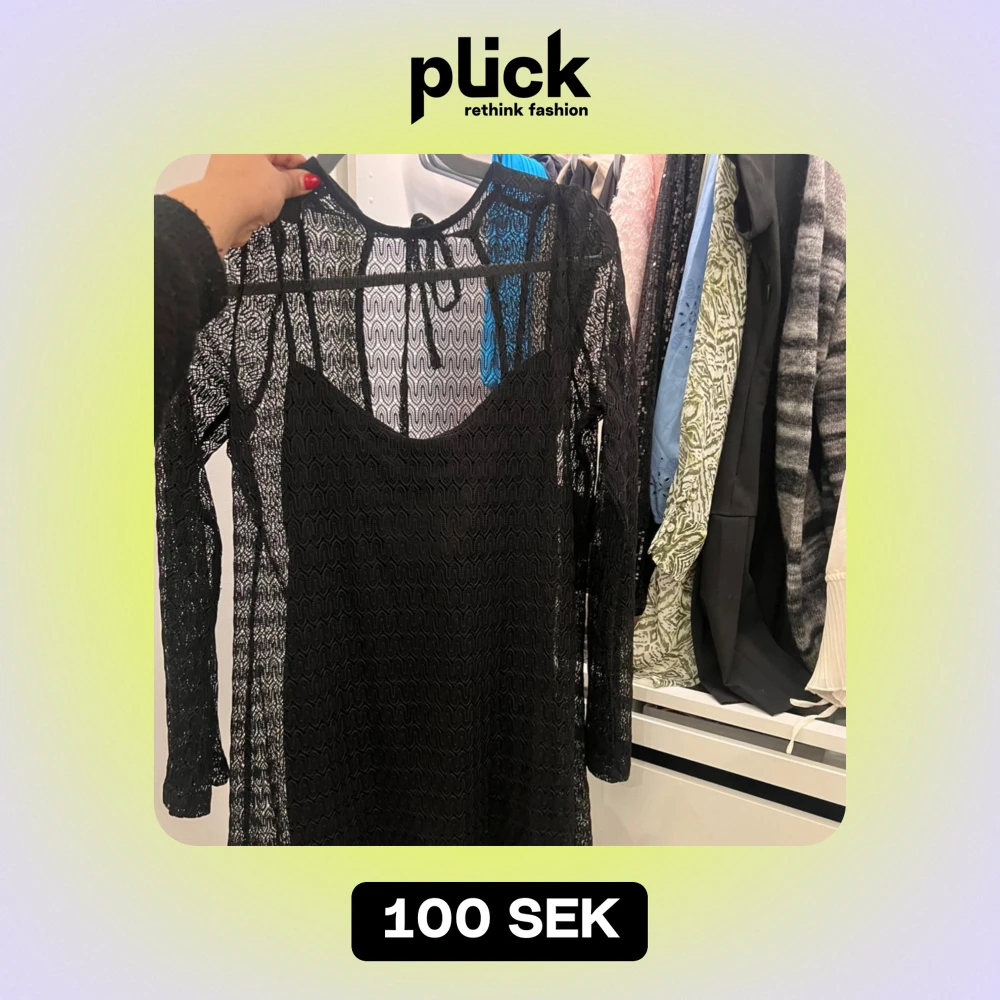Säljer en svart spetsklänning med långärmad design. Underklänningen medföljer! Klänningen har är perfekt för festliga tillfällen. Den är i mycket bra skick!