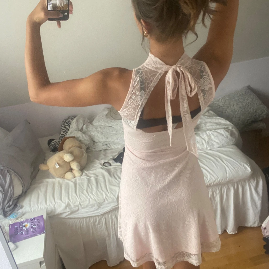 Rosa spets klänning med shooker och knyt detalj från bubbleroom. Jättefin till fest.
