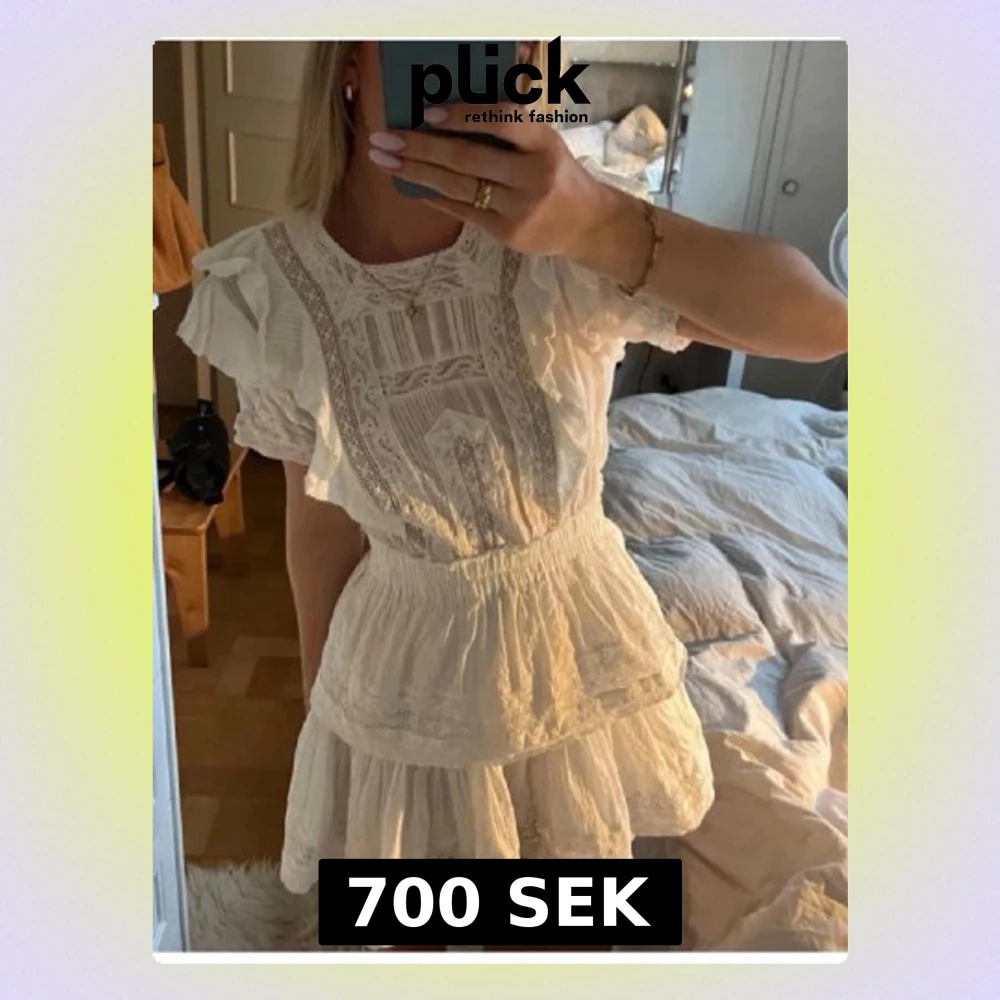 Supersöt vit kort klänning perfekt till studenten💕PRIS KAN DISKUTERAS! Den har några lösa trådar vid midjan men inget som syns och går att klippa bort, hon jag köpte av sa det skulle vara så.