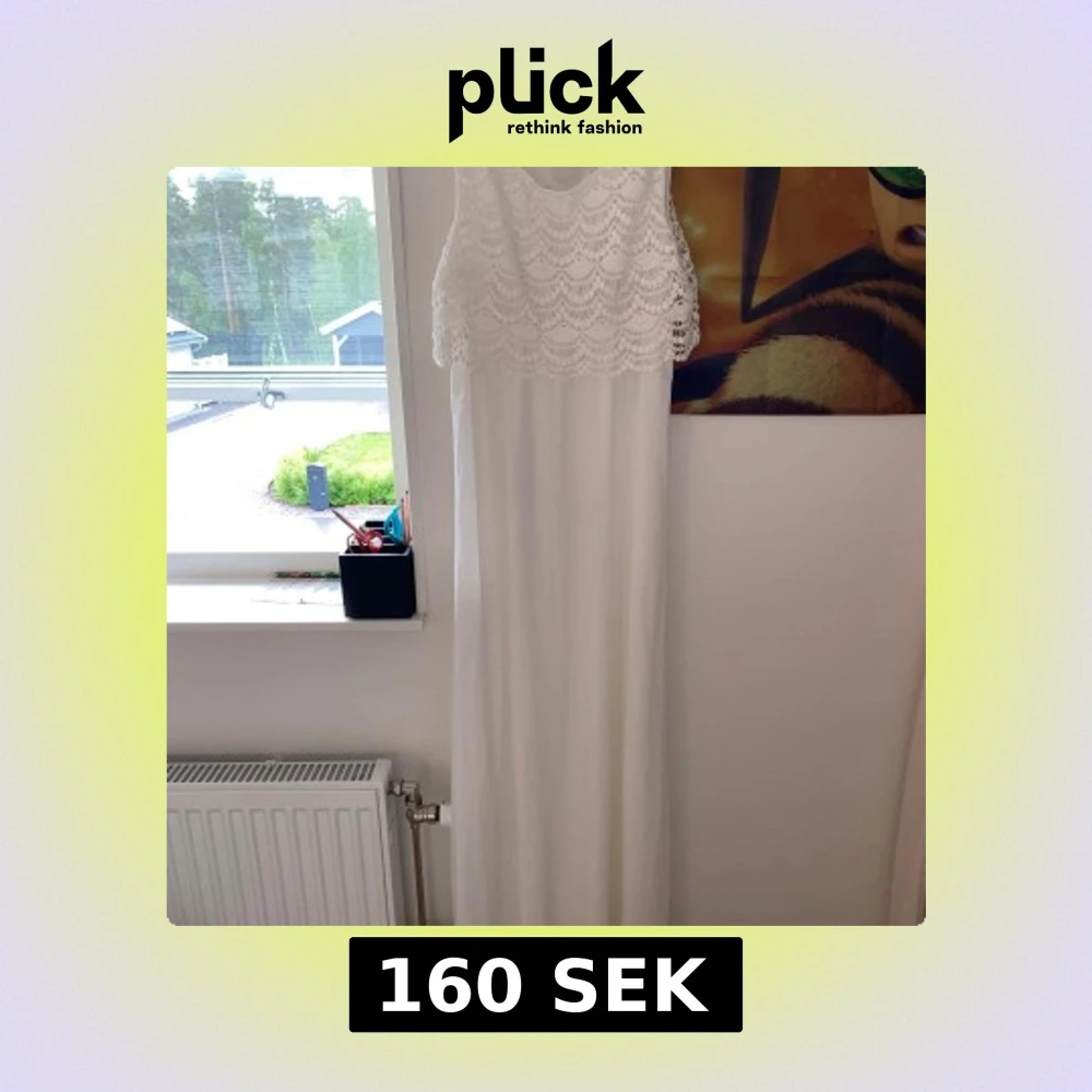 Supersöt vit långklänning från Tom Tailor i storlek XS. Klänningen har ett vackert spetsliv med vågigt mönster och är ärmlös. Kjolen är enkel och faller snyggt. Perfekt för sommarens alla tillfällen!