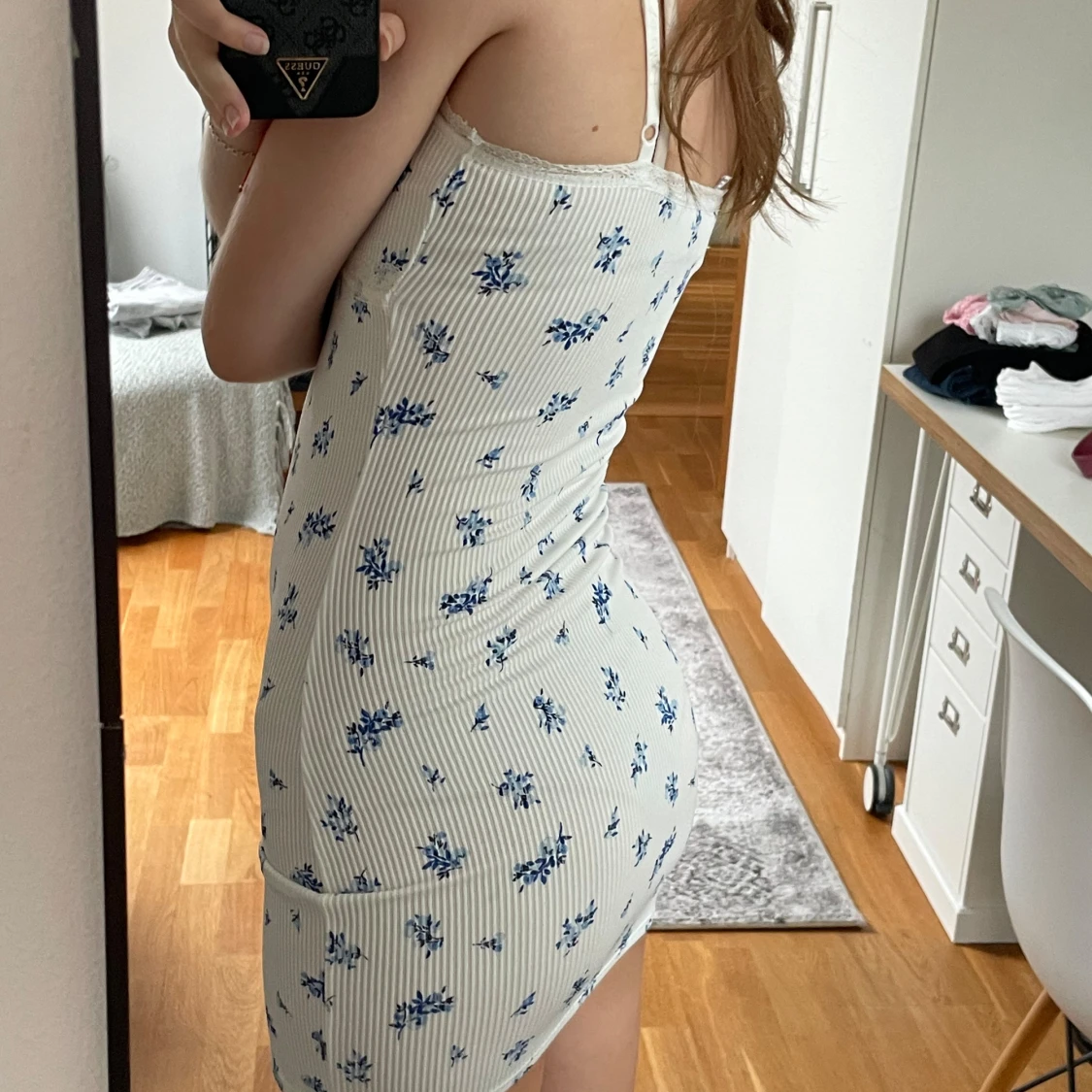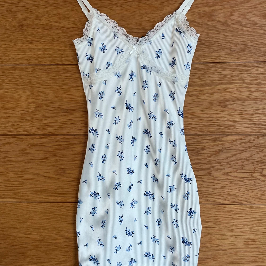 Säljer denna superfina vita klänning med blå blommor och spetsdetaljer. Klänningen är tight och kort, perfekt för sommar och fest. Är i jättebra skick och i storlek XS, men är väldigt stretchig och passar mig som brukar ha S💞