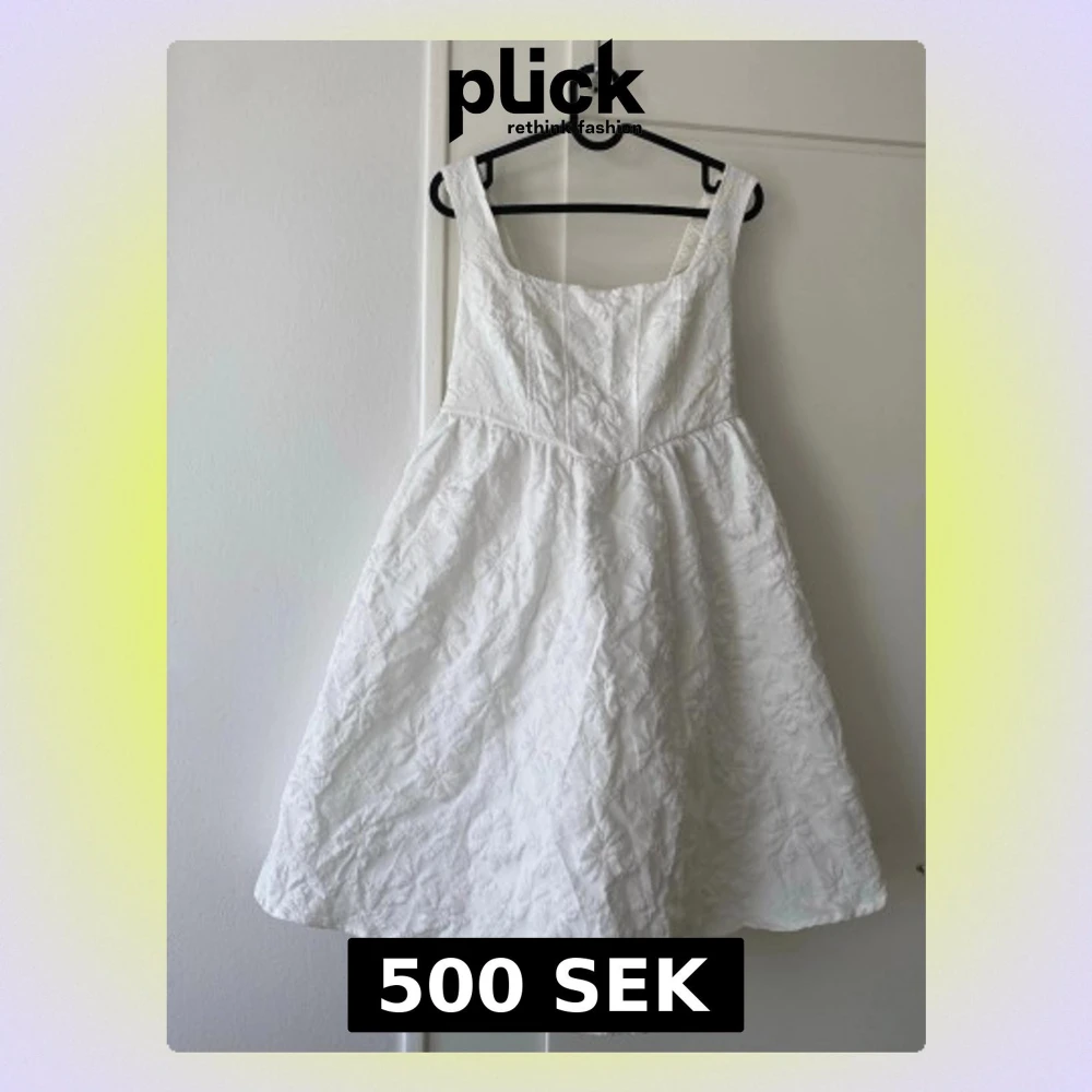 Superfin vit klänning med breda axelband som har blommigt spetsmönster och dragkedja som fungerar. Klänningen har en stor rosett i ryggen och ett tunt lager tylltyg (se sista bild) den går till lite över knäna på mig (170cm) och är köpt på en vintagebutik i Italien men jag själv har aldrig använt den 🌟 väldigt bra skick för att vara vintage och vintagelukten är inte längre kvar 🔥