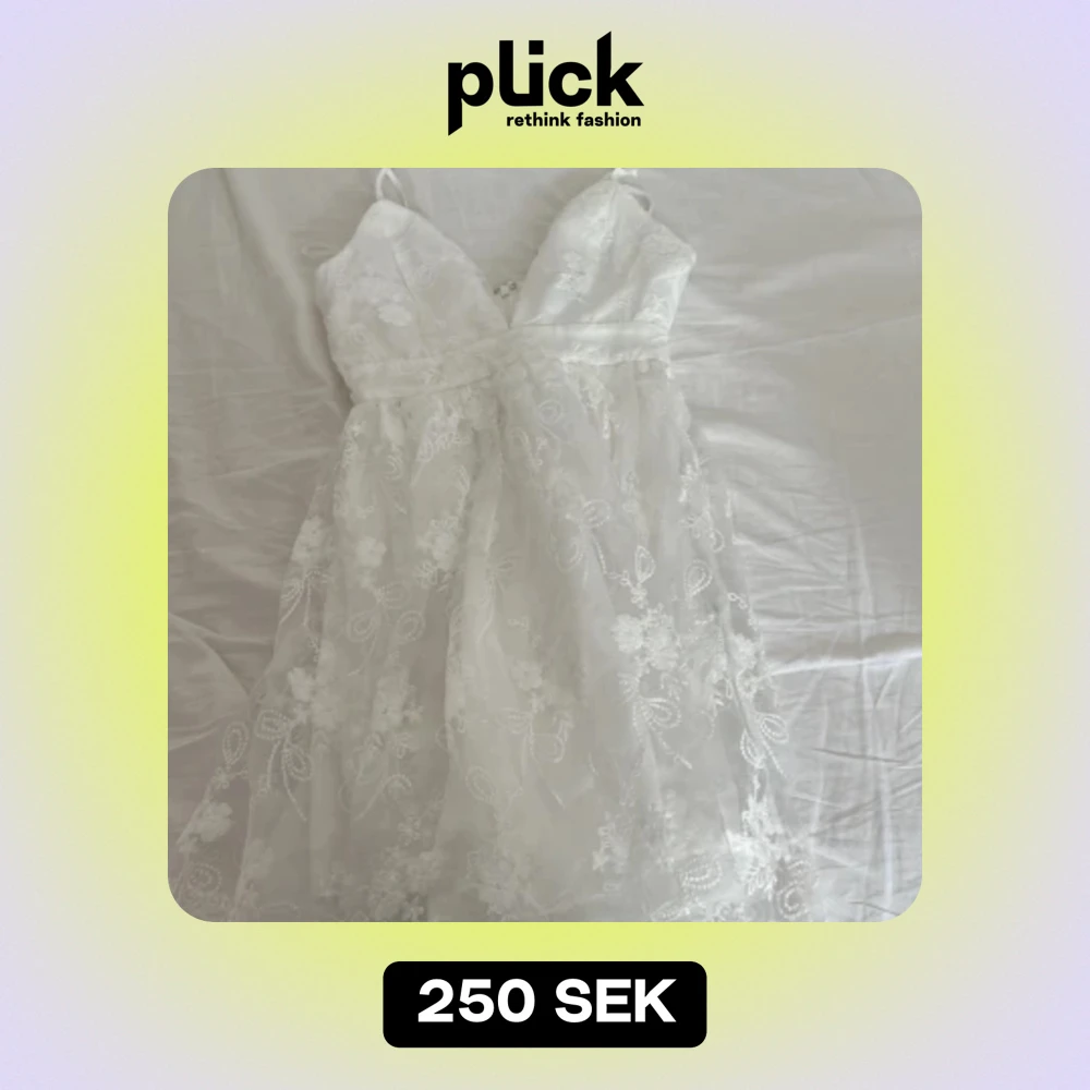 En vitt spetskläning med lite spets jätte fin med lite puff som kjol 🤍 I storlek xs , Eu 34 Skriv gärna till mig om intresserad innan ni väljer att köpa