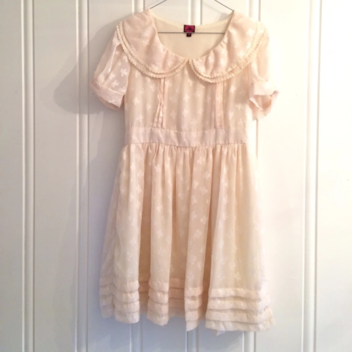 supersöt klänning säljes. tyvärr är den för stor för mig, men hoppas art någon annan vill ha den och använda den mer en jag. använd 1 gång. storleken säger XL men jag använde den då jag var en S. skickar gärna måtten! säg till bara <3