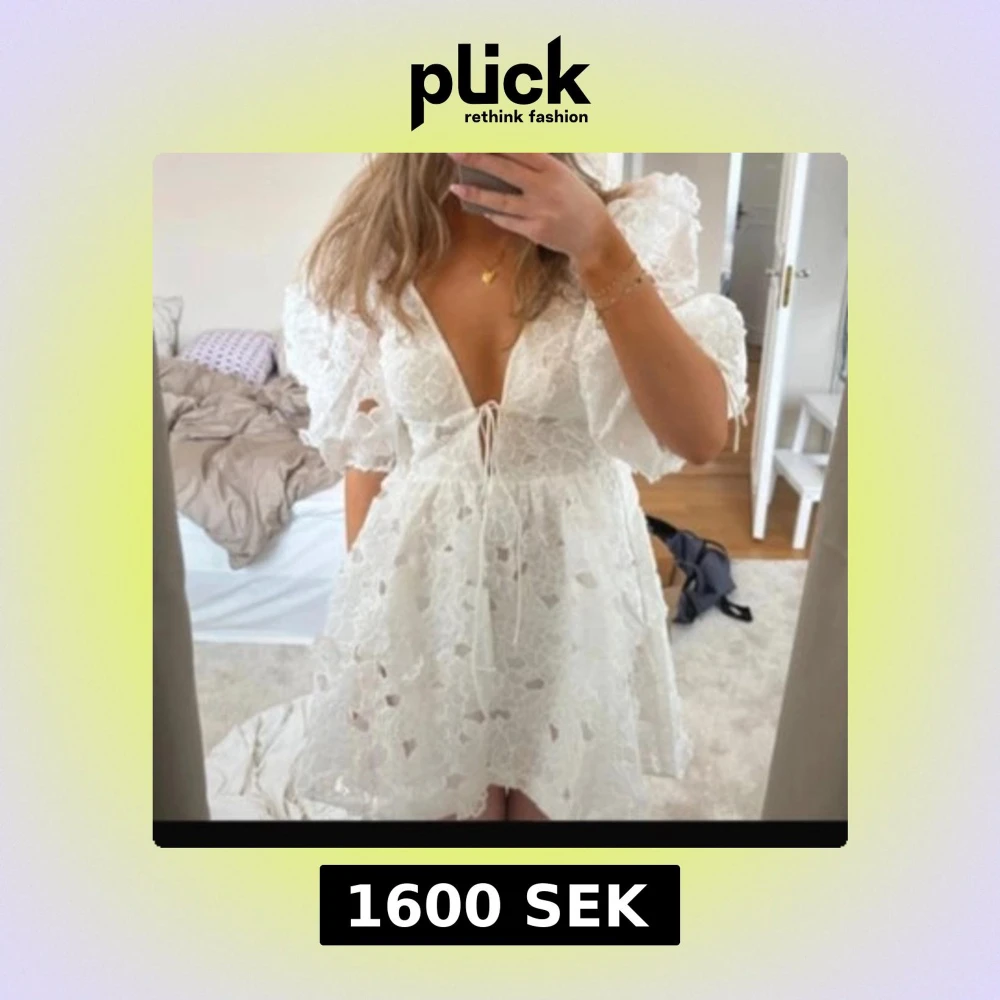 Superfin vit kortklänning med djup v-ringning, puffiga kortärmar och knyt framtill. Klänningen har blommigt spetsmönster. Såå himla snygg klänning från love and lemons. Nypris 2300, slutsålt på hemsidan. Helt oanvänd, endast testad!