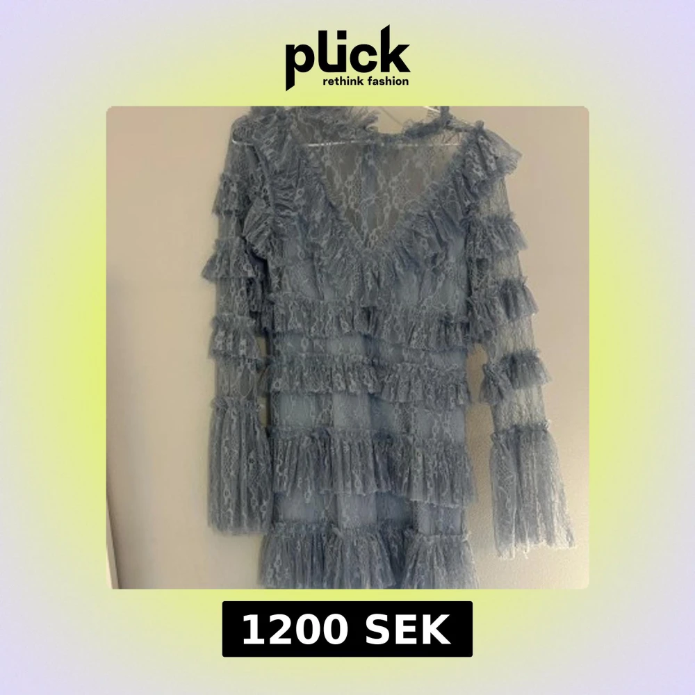 Superfin ljusblå kortklänning i spets med massor av volanger från by Malina. Orginal pris 2800kr. Använd ca 5 gånger. Kan tänka mig gå ner i pris vid snabb affär 🩵