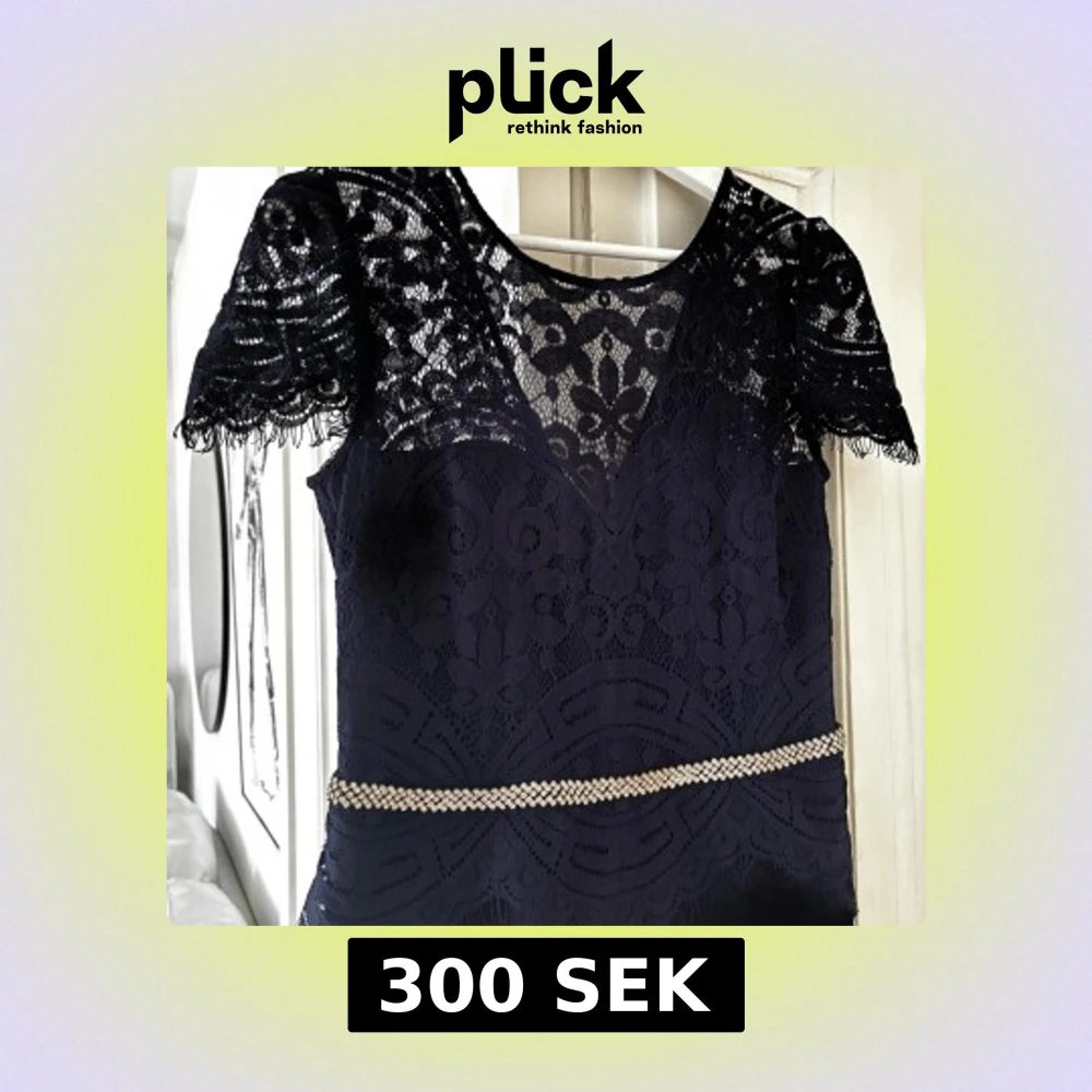 Fin marinblå Lång klänning med spetsliv och strass detalj , härlig dubbel sydd kjol