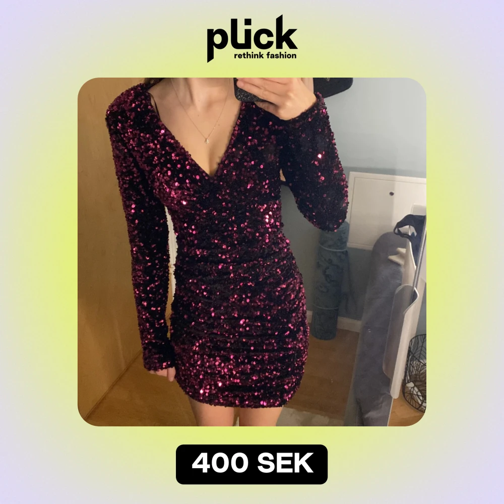 Säljer en superfin vinröd klänning från Gina Tricot i storlek XS. Den är täckt med glittriga paljetter och har en tight passform. Klänningen är långärmad och perfekt för festliga tillfällen som julafton🎄Den har en djup v-ringning. Köpte förra året och är bara använd en gång.