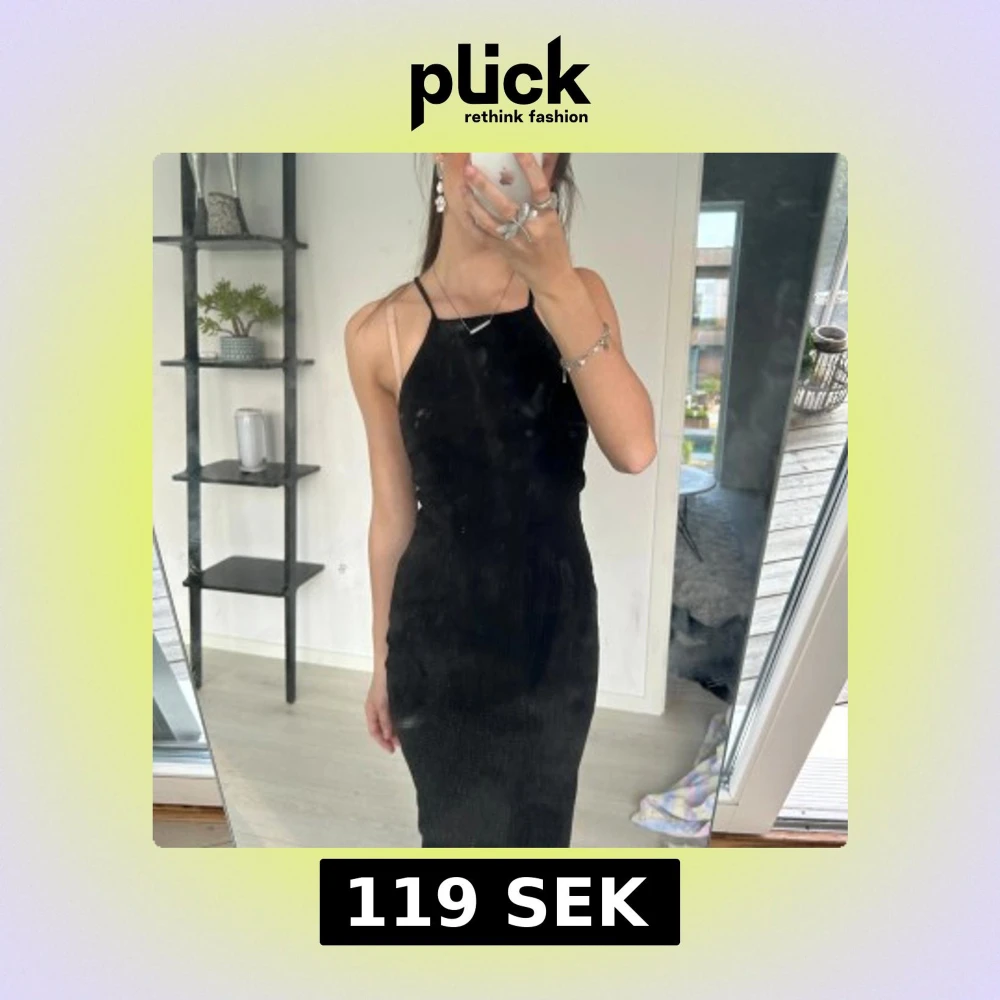 Säljer en skitsnygg svart långklänning med smala axelband och ribbad struktur från Gina. Klänningen har en tight passform och är perfekt för alla möjliga olika tillfällen. Har dock blivit lite kort för mig så säljer av den anledningen